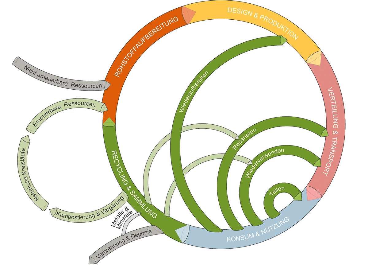 Im Gegensatz zum linearen Modell „entnehmen – produzieren – konsumieren – wegwerfen“ ist die Kreislaufwirtschaft ein Wirtschaftsmodell, das darauf abzielt, die Lebensdauer von Produkten und Materialien zu verlängern, Verschwendung zu reduzieren und Abfälle in Ressourcen zu verwandeln.